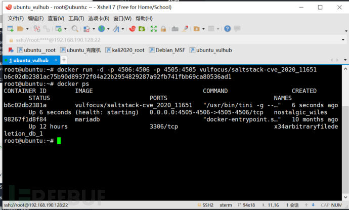 靶机: 192.168.190.128(ubuntu18.04)(基于Docker搭建漏洞环境)